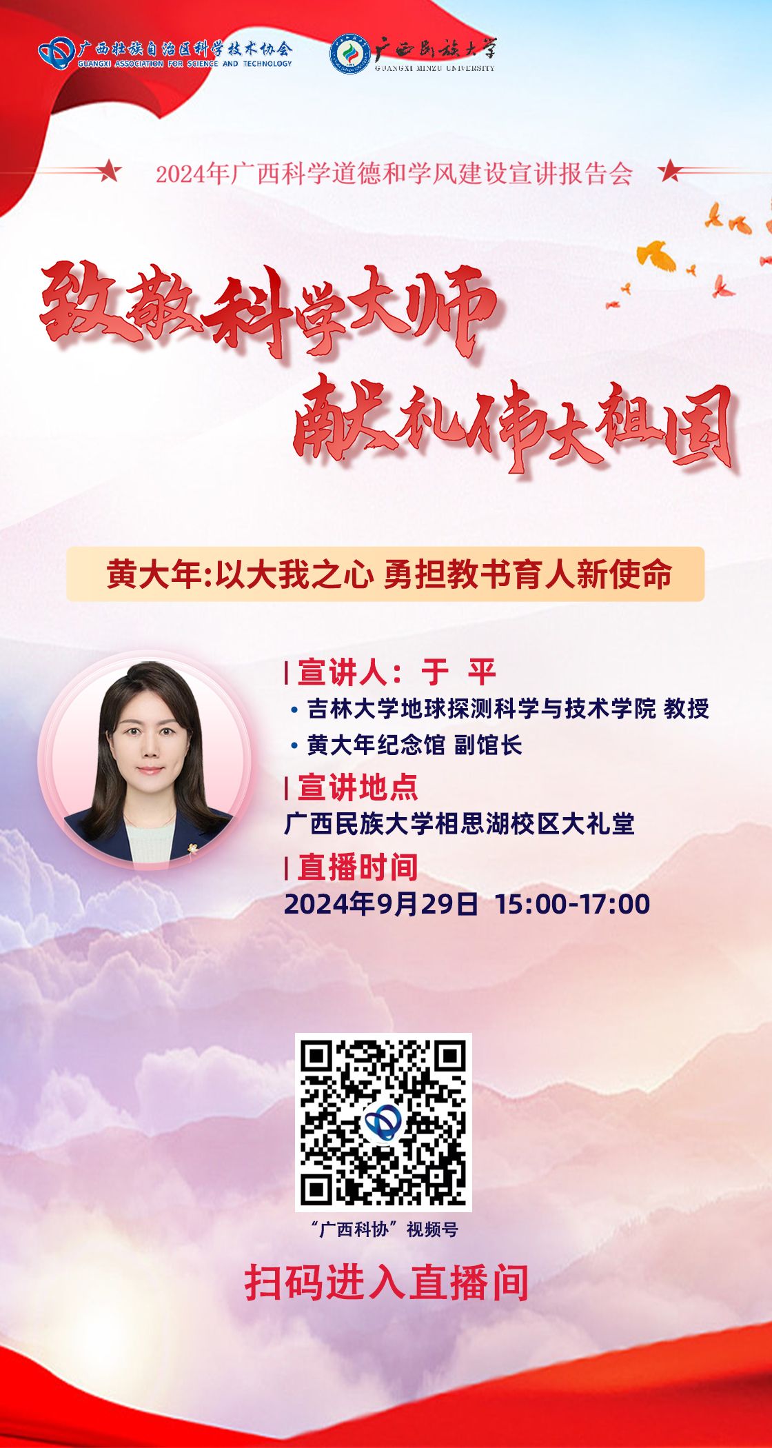 致敬科学大师,献礼伟大祖国——2024年广西科学道德和学风建设宣讲报告会